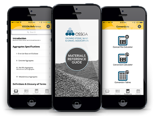 The Ontario Stone, Sand & Gravel Association has a new app available for Operations, Sales and Quality Control staff who may have questions about aggregate materials. The Material Reference Guide App provides detailed information right at your fingertips.