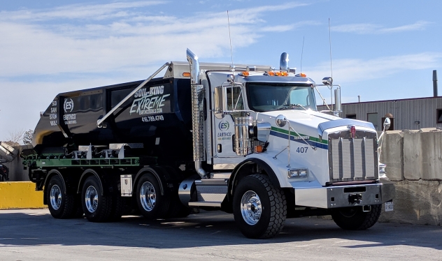 Meet the newest addition to the Earthco fleet, the Soil King Extreme. An improvement from the Soil King Plus, the Soil King Extreme Slinger boasts the most recent industry innovation. The Soil King Extreme's security, flexibility and sturdiness is unmatched in the soil and stone spreading industry, helping us take care of business more securely and more productively than any other soil, mulch and stone supplier. This new spreader additionally makes us more efficient, holding a volume of 30 cubic yards when conveying lighter materials, versus 25 yards on a traditional slinger truck. Utilizing the licensed metering bar, a limited administrator can control the position of topsoil, stone, sand and other material by remote operation.