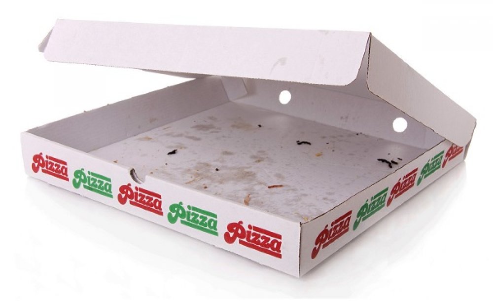 Contrary to popular belief, pizza boxes should not be recycled. While they are made entirely of cardboard, pizza boxes always have food scraps remaining, and the oil causes problems for the binding of the fibers when processed. These contaminants make pizza boxes non-recyclable.